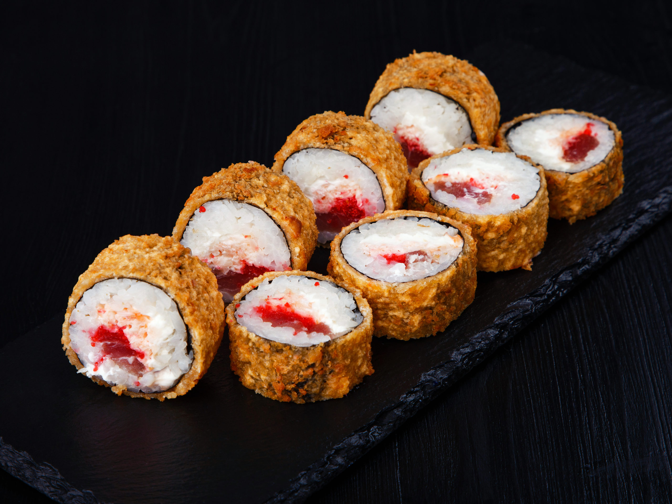 Многие считают, что жареные роллы не менее вкусны, чем холодные, и это правда. Популярность жареных роллов обусловлена тем, что они могут продаваться в фастфуд-точках. Зажаренная корочка и мягкая, сливочная начинка — вот, что ценят любители японской кухни.