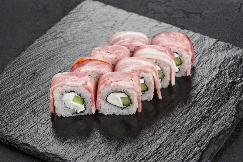 Роллы с мясом — не редкость у любителей азиатской кухни. Таким, например, является ролл с беконом, пользующийся спросом у многих посетителей ресторанов. Для блюда берём: